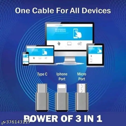 3 In 1 Fast Charging Cable V8, Type-C , iphon Use Car And Home